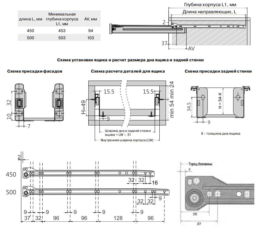 Глубина направляющих