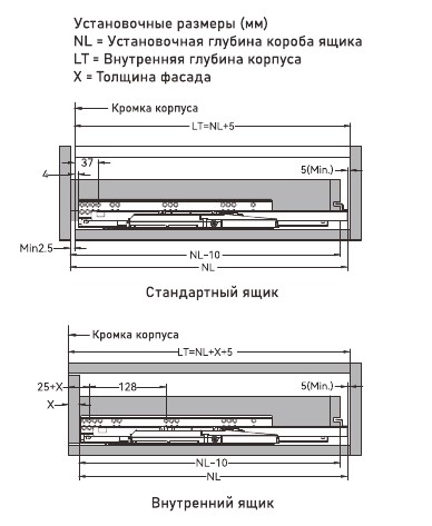Глубина направляющих