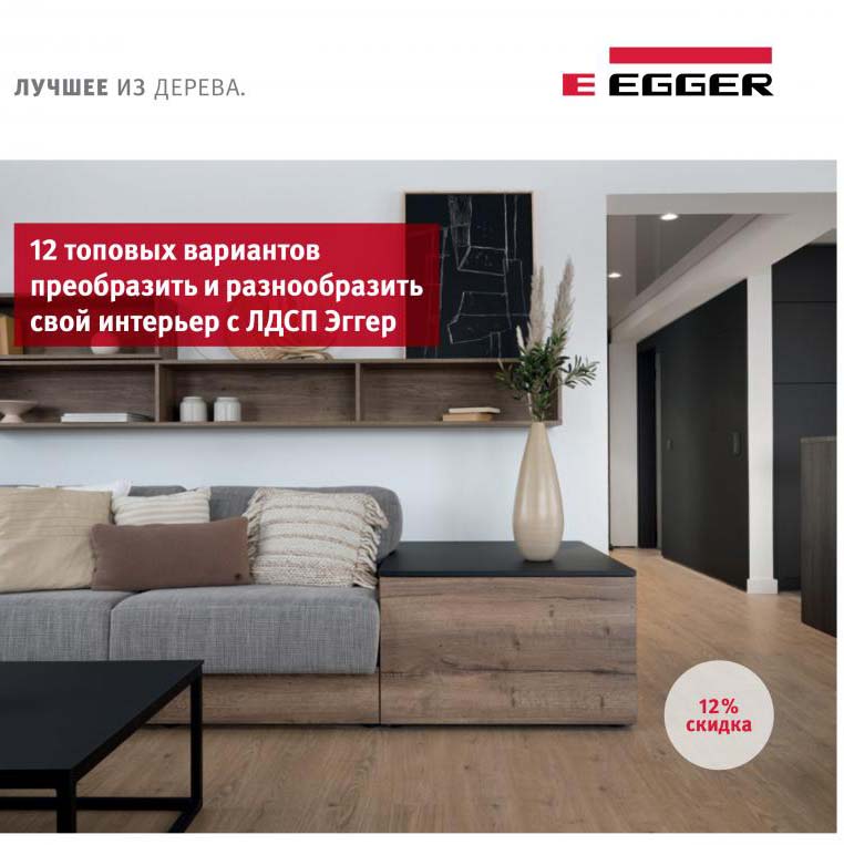 Декабрь 2022 – январь 2023 пройдут под знаком Egger, ведь завод запустил акцию «-12%» на 12 самых востребованных декоров.